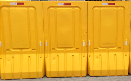 是一種用于分割路面或形成阻擋的設施,通常是上小下大的結構,上方有孔以注水增重,部分水馬還有橫向的通孔,以便通過桿件連接以形成更長的阻擋墻。